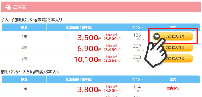 まずは購入したい商品を選択し、お買物カゴに入れましょう。