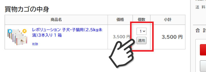 同一商品を複数個購入したい場合は、手順3で個数を増やすことができます。